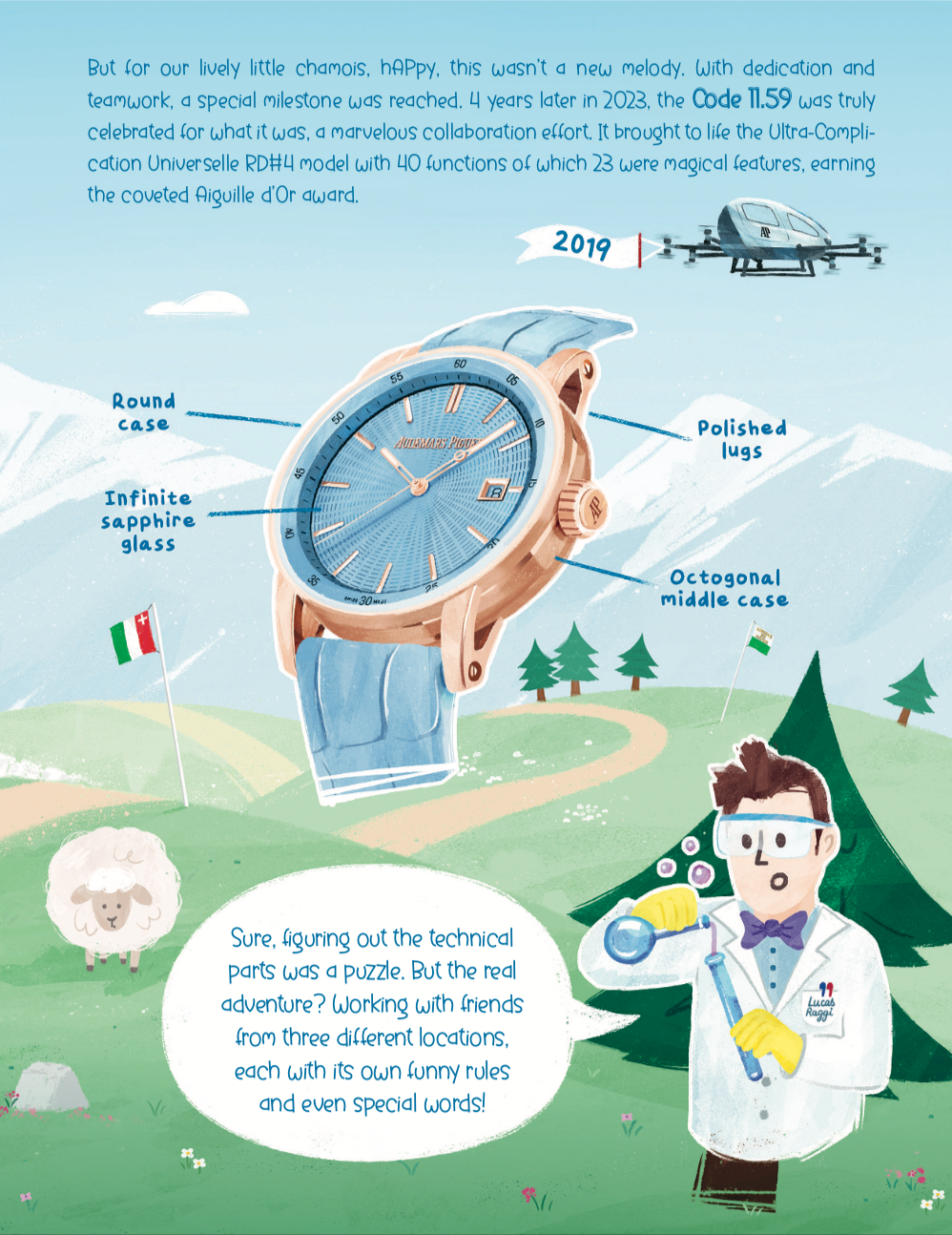 8 pages illustrées sous forme de conte pour enfants pour le magazine horloger Heist Out